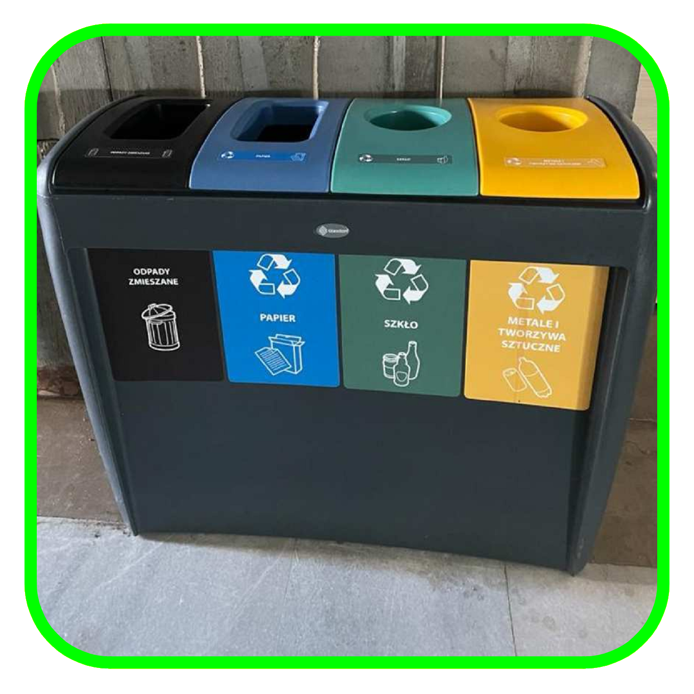 Odpady ze szkła, w tym odpady opakowaniowe ze szkła -- gromadzone będą w workach koloru zielonego oznaczonych napisem „szkło" lub w pojemnikach oznaczonych napisem „szkło" (pojemniki koloru zielonego).